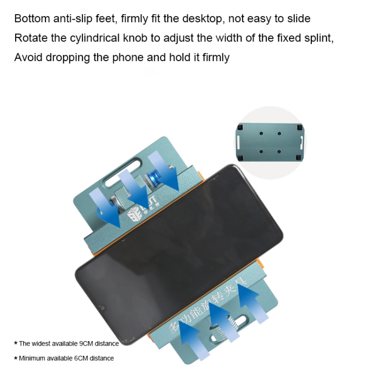 - Rotación de 360 grados, Marco de silicona y almohadilla inferior de esponja para protección del dispositivo, pies antideslizantes, ajuste de perilla, distancia ajustable entre 6 cm y 9 cm
