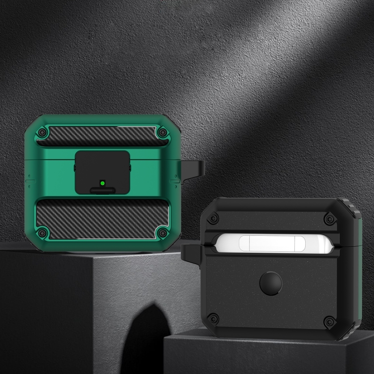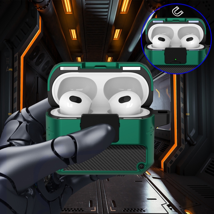 Bomba Automática TPU + PC Estuche Protector para Auriculares con Interruptor para AirPods 3 (Negro Verde)