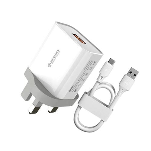 Cargador rápido Wk Wp-U57 18W QC3.0 + Cable USB A a Tipo C (Enchufe Reino Unido)