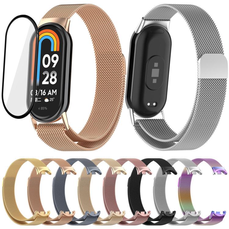 Correa de acero inoxidable milanesa con película curva 3D para Xiaomi Smart Band 9/9 NFC (plateada)