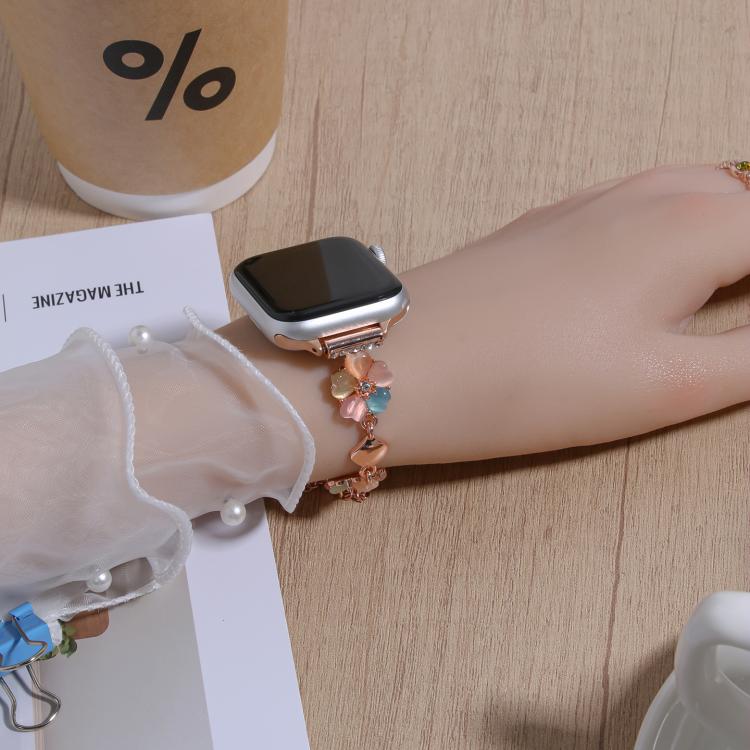 Correa de aleación con trébol de cuatro hojas para Apple Watch de 46 mm, 49 mm, 45 mm y 44 mm (oro rosa y trébol de cuatro hojas)
