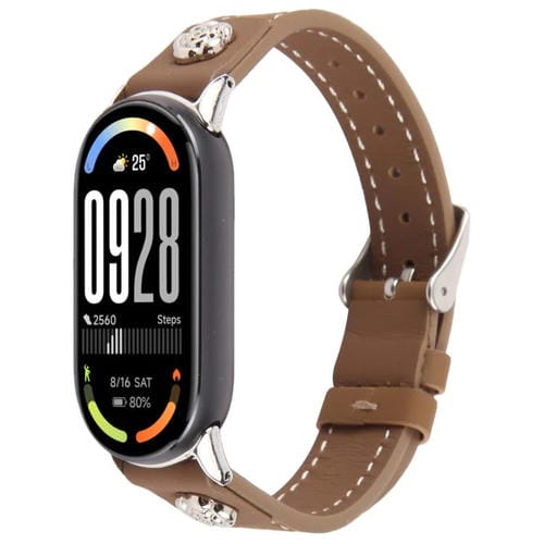 Correa de cuero de microfibra con remaches y tacto de camelia para Xiaomi Smart Band 10/9/8 (marrón oscuro)