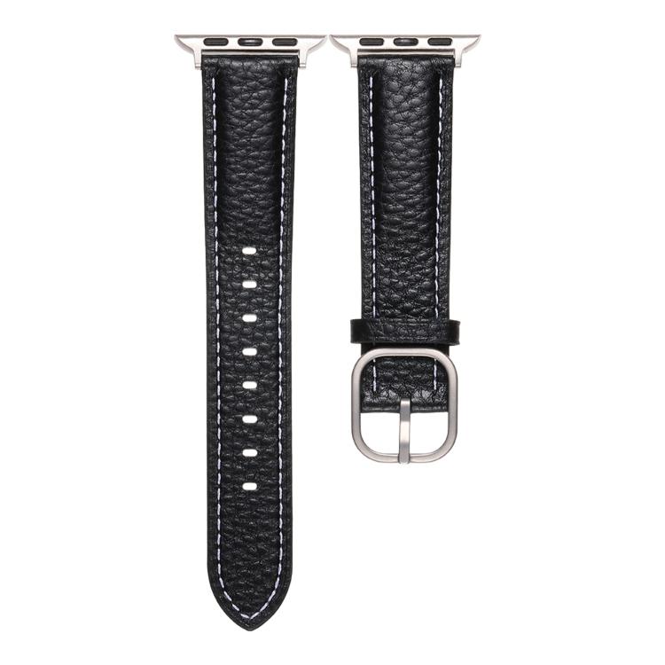 Correa de cuero genuino con textura de lichi y hebilla cuadrada para Apple Watch de 46 mm, 49 mm, 45 mm y 44 mm (negra)