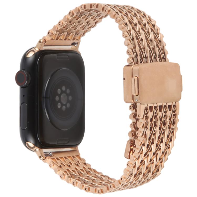 Correa de malla de acero con cierre magnético para Apple Watch de 46 mm, 49 mm, 45 mm y 44 mm (oro rosa)