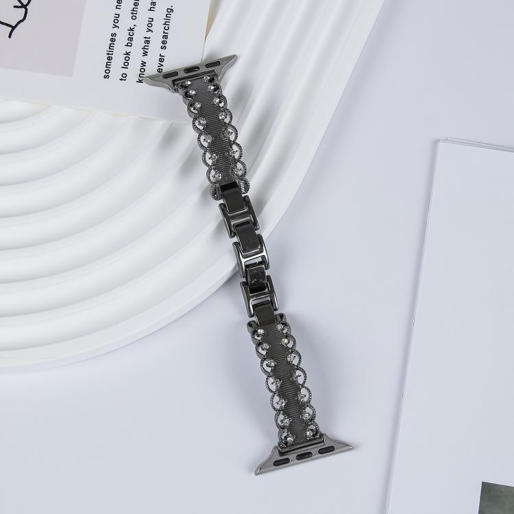 Correa de metal con borde de encaje y diamantes para Apple Watch de 42 mm, 41 mm, 40 mm y 38 mm (negra)