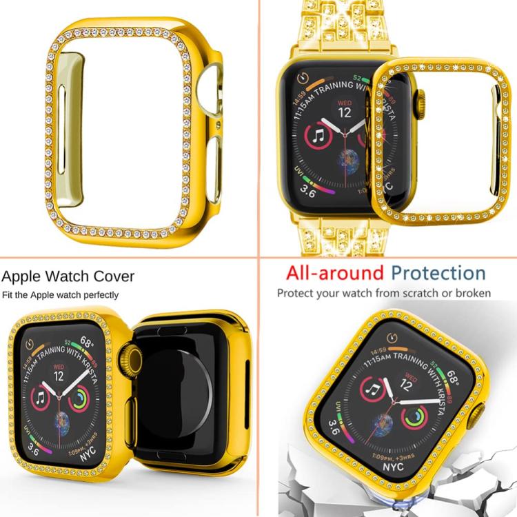 Correa de metal con diamantes brillantes y estuche para Apple Watch Series 40 mm xDfind (dorada)