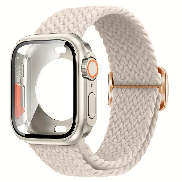Correa de nailon con hebilla de escalera para Apple Watch Series 10/11 de 46 mm, con funda de PC con película Ultra de 49 mm (Starlight)