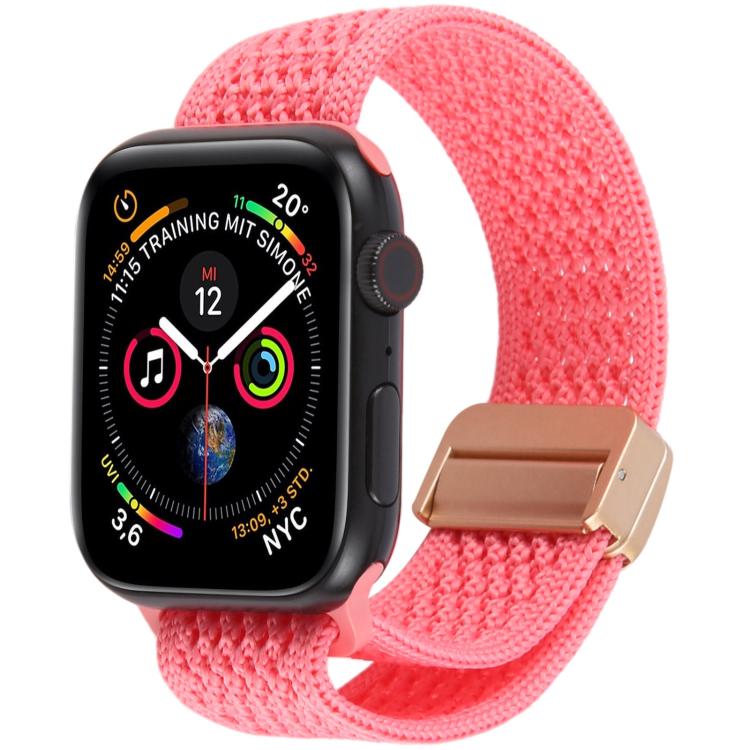 Correa de nailon transpirable con hebilla magnética para Apple Watch de 46 mm, 49 mm, 45 mm y 44 mm (rosa)