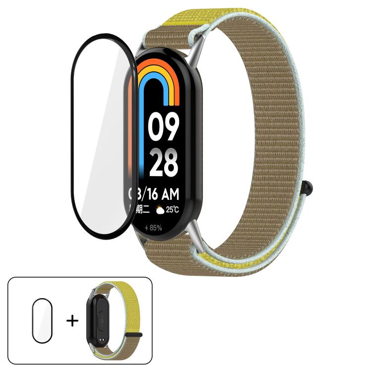 Correa de reloj con cierre de velcro de nailon y película curva 3D para Xiaomi Smart Band 9/9 NFC (Camello)