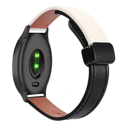 Correa de Reloj de Cuero Microfibra Garmin Vivomove 20mm Hebilla Magnética (Negro y Albaricoque)