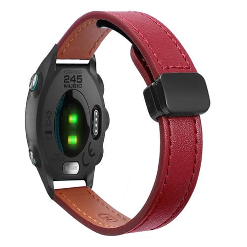 Correa de Reloj Cuero Microfibra 20mm con Hebilla Magnética para Garmin Forerunner 245 Music (Rojo Vino)