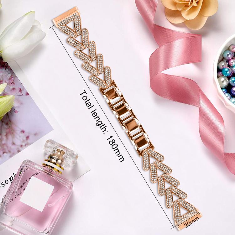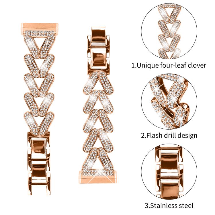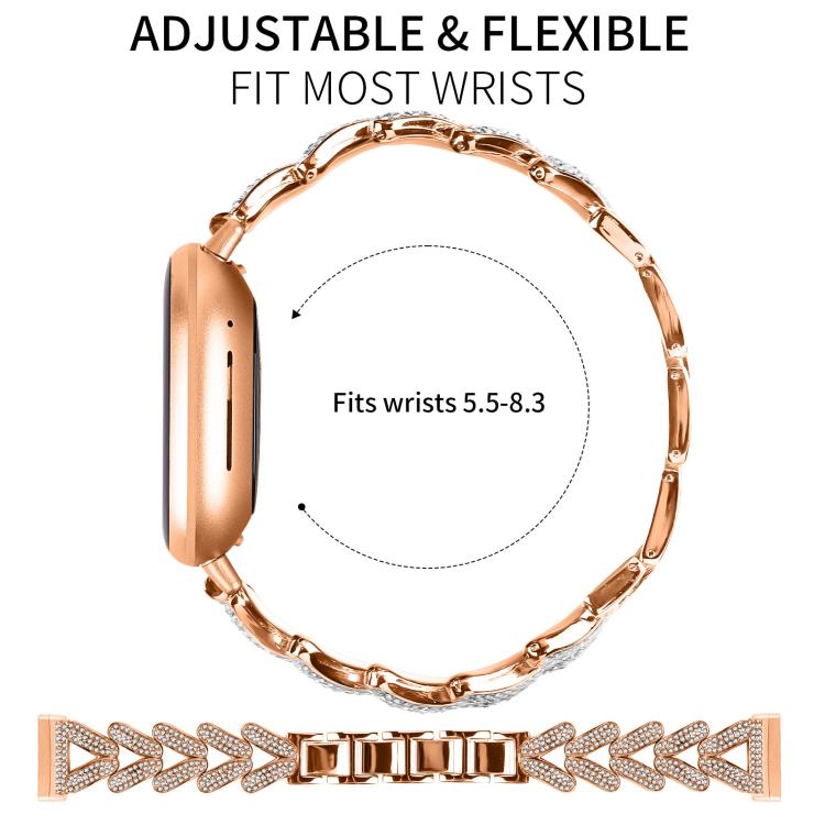 Correa de reloj de metal con diamantes pequeños de 20 mm xDfind para Fitbit Versa 4/3/Sense/Sense 2 (oro rosa)