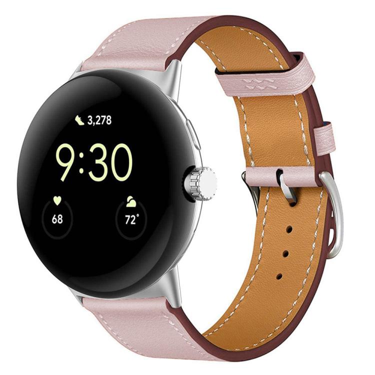 Correa de reloj de piel auténtica de 41 mm para Google Pixel Watch 4 / 3 / 2 / 1 (rosa claro)