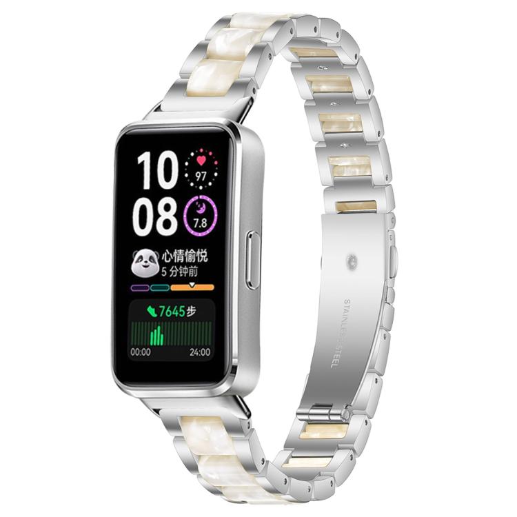 Correa de reloj de resina metálica de tres cuentas xDfind para Huawei Band 10/9/8 (plateada y blanca)