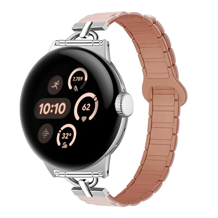 Correa de reloj magnética de silicona con tres cuentas en forma de D de 45 mm para Google Pixel Watch 4/3 (rosa, gris).