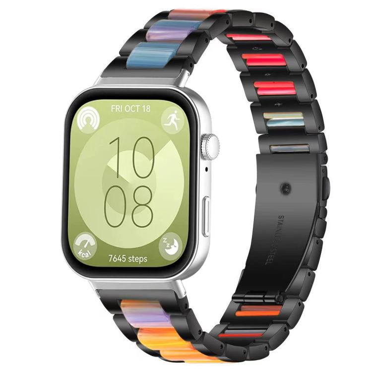 Correa de resina metálica de tres cuentas para Huawei Watch Fit4 / Fit4 Pro / Fit3 xDfind (arcoíris negro)