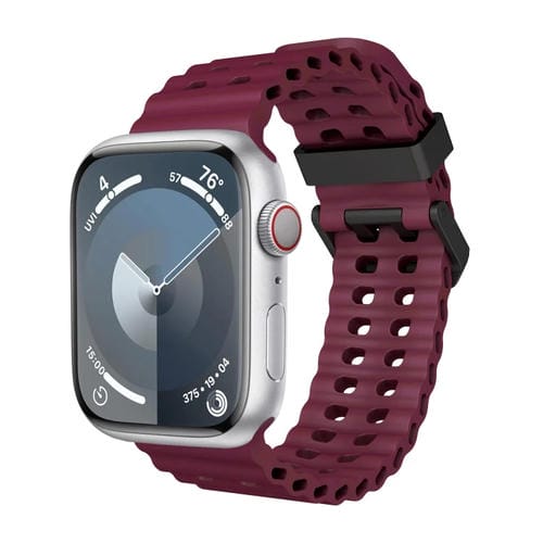 Correa de Silicona para Apple Watch Series 7 de 45mm con Dos Agujeros en Forma de Océano (Rojo Vino)