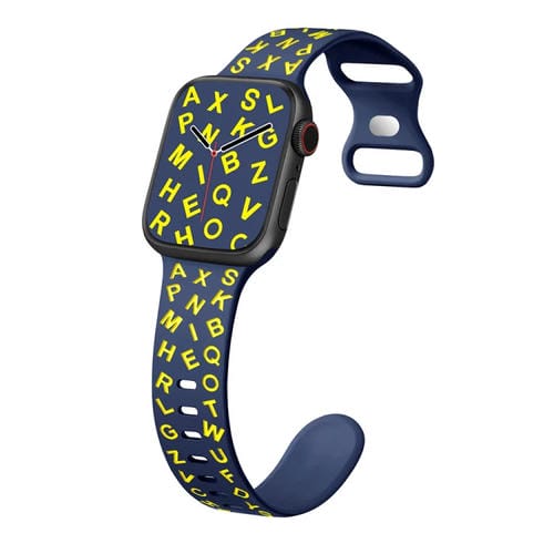 Correa de Silicona para Apple Watch Series 3 38mm con Hebilla de Mariposa y Letras (Azul Medianoche y Amarillo)