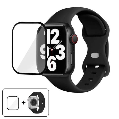 Correa de silicona con hebilla de mariposa y película curva 3D para Apple Watch Series 40 mm (negra)