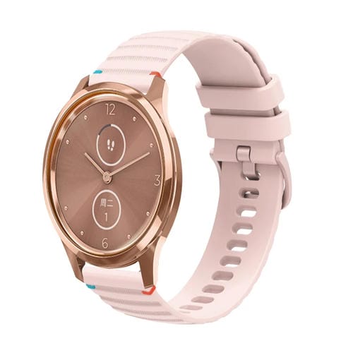 Correa de Silicona para Reloj Garmin Move Luxe 20mm con Puntadas Onduladas y Puntos (Rosa)