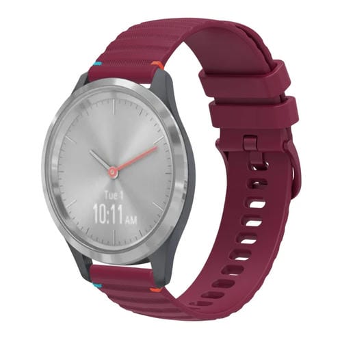 Correa de Silicona para Reloj Garmin Vivomove 3S 18mm con Puntadas Onduladas y Puntos (Rojo Vino)