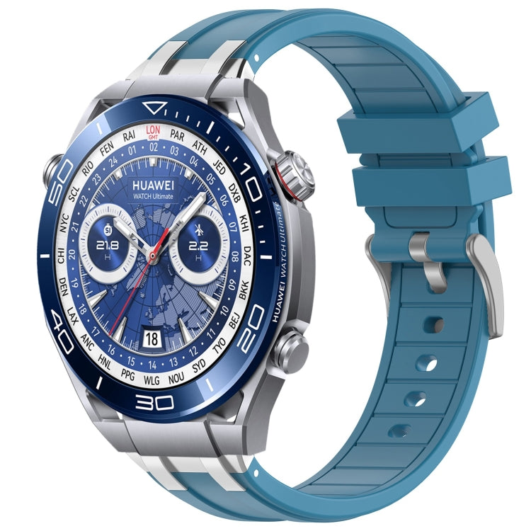 Correa de Silicona para Reloj Huawei Watch Ultimate 22mm con Hebilla Plateada (Azul Marino)
