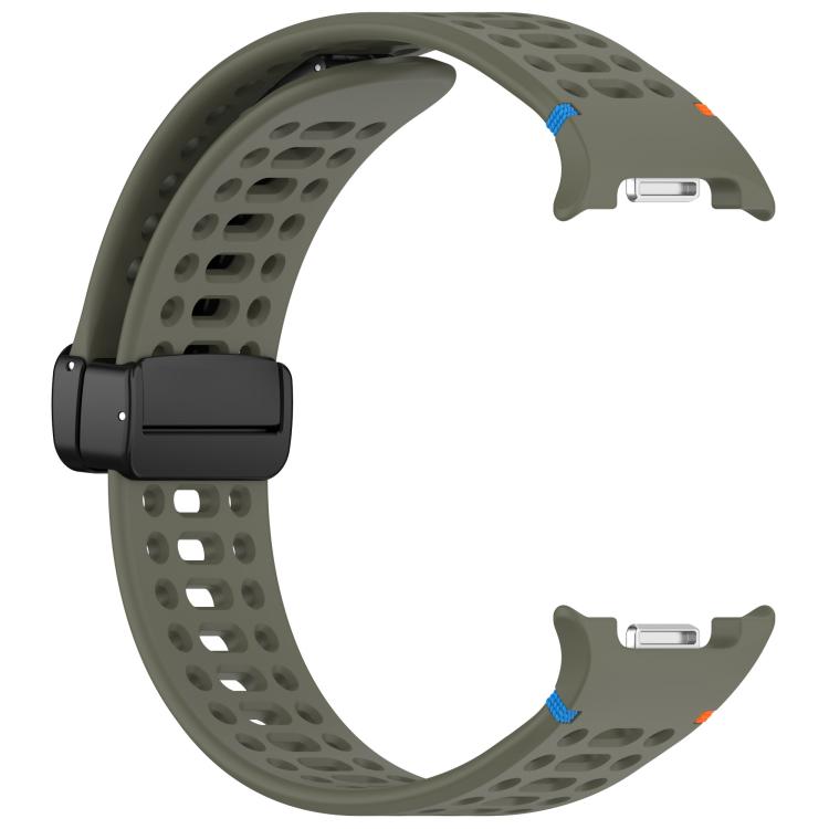 Correa de silicona transpirable con hebilla magnética negra y costuras para Samsung Galaxy Watch8/Watch8 Classic (verde)