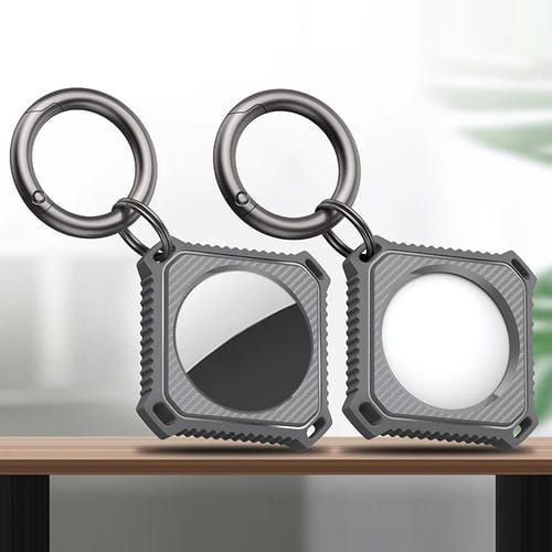 Llavero Cuatro Fibra de Carbono Cuadrado para AirTag (Gris)