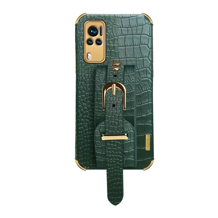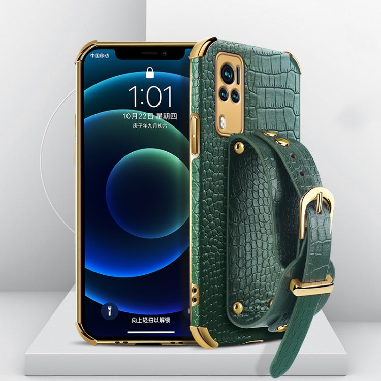 Estuche de Cuero con Patrón de Cocodrilo de TPU Electrochapado con Correa para la Muñeca para Vivo X60 (Verde)