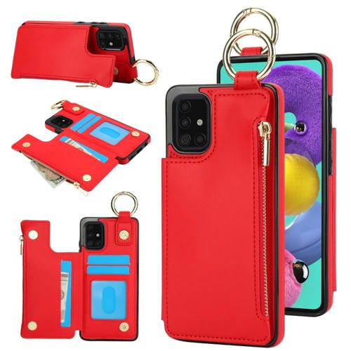 Estuche para Teléfono Samsung Galaxy A51 4G con Cremallera y Anillo Doble Hebilla Antirrobo (Rojo)