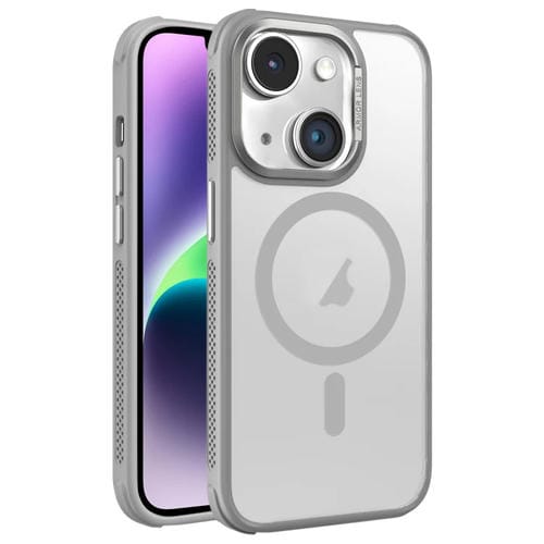 Estuche para Teléfono Magsafe iPhone 14 Plus Marco Metal Esmerilado Piel Enfriamiento (Gris)