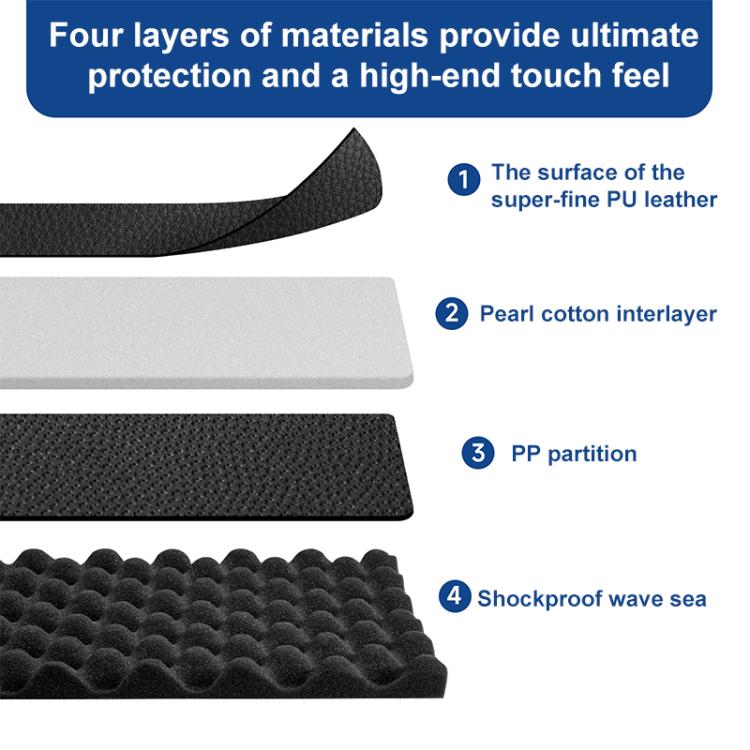 3. Incorpora algodón perlado, placa de polipropileno y esponja ondulada para una mejor absorción de impactos y una protección más eficaz para los auriculares.