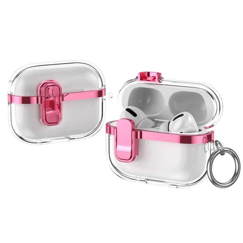 Estuche Para Auriculares Inalámbricos Airpods Pro 2 Transparente Galvanizado Con Cierre De Seguridad (Rosa)