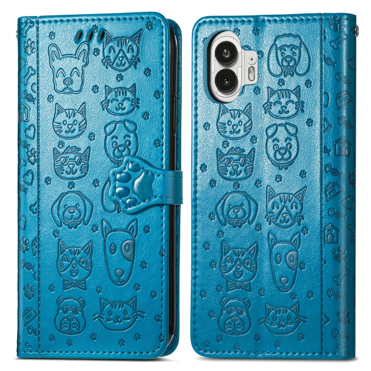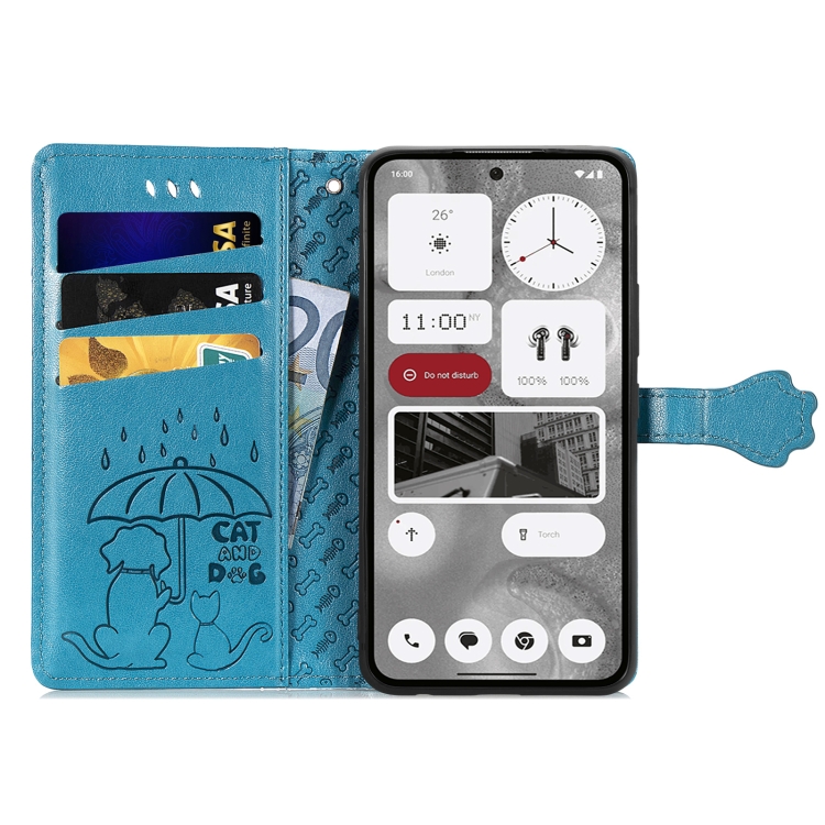 Estuche para Nothing Phone 2 de Cuero En Relieve con Diseño de Gato y Perro (Azul)