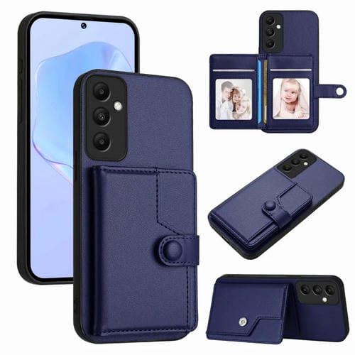 Funda Antirrobo RFID para Samsung Galaxy A05S 4G con Botón y Tarjetero (Azul)