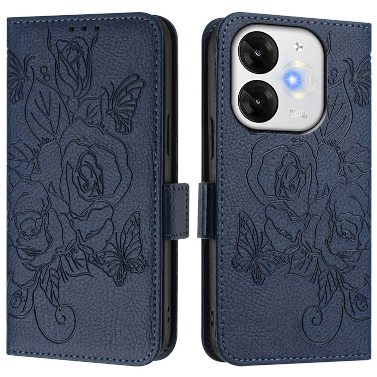 Funda de Cuero Antirrobo RFID con Relieve para Teléfono Itel A80 4G (Azul Oscuro)