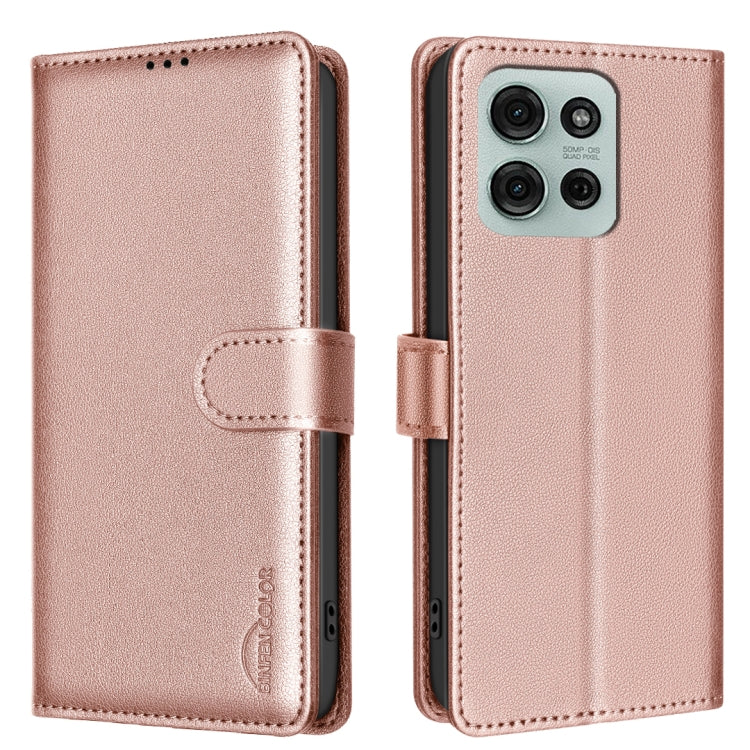Funda de Cuero Antirrobo RFID para Motorola Moto G75 5G con Textura Litchi (Dorada)