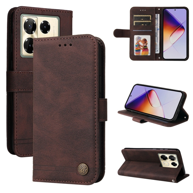 Funda de Cuero con Botones de Metal y Árbol de la Vida para Infinix Note 40 Pro 4G/5G/Pro+ (Marrón)