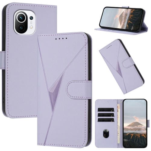 Funda de Cuero con Hebilla y Diseño Triangular para Xiaomi Mi 11 (Morado Claro)