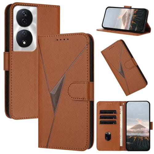 Funda de Cuero con Cierre de Hebilla y Diseño Triangular para Honor X7B 5G (Marrón)