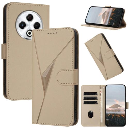 Funda de Cuero para Tecno Spark 30 4G con Cierre de Hebilla y Diseño Triangular (Dorada)