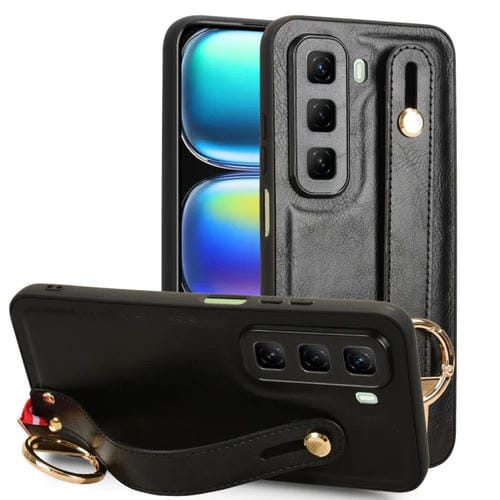 Funda de Cuero con Correa para el Cuello para Infinix Hot 50 5G (Negra)