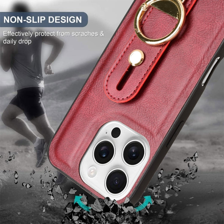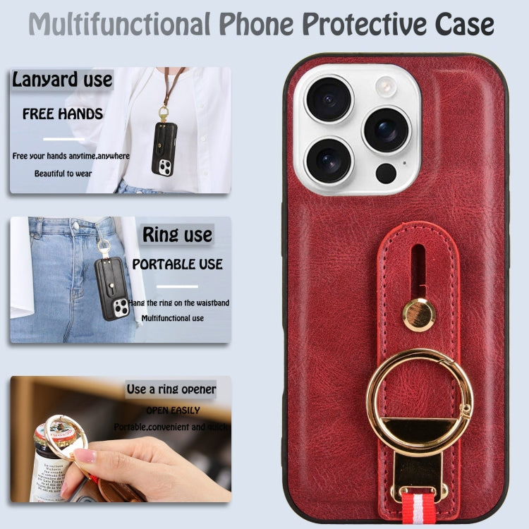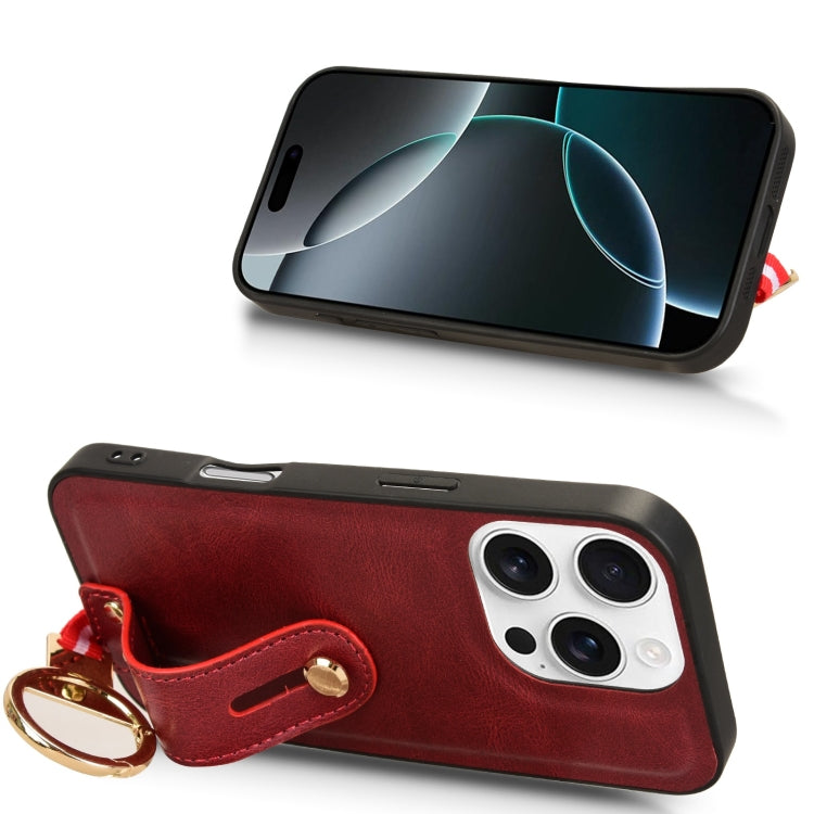 Funda de Cuero con Correa para la Muñeca para iPhone 16 Pro (Rojo)