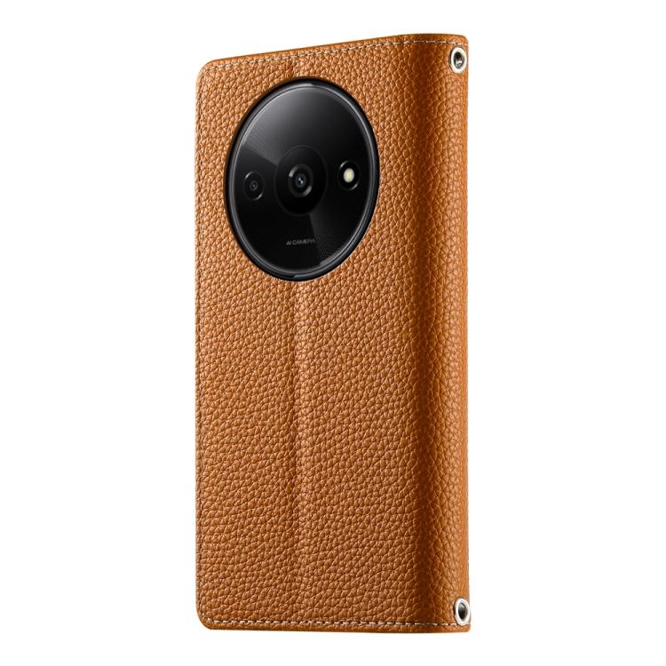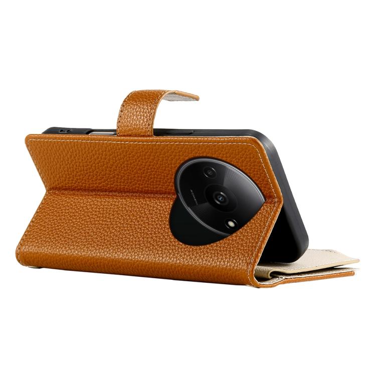 Funda de cuero con cremallera para Redmi A3 / Xiaomi Poco C61, con costuras, para múltiples tarjetas y correa corta (marrón)