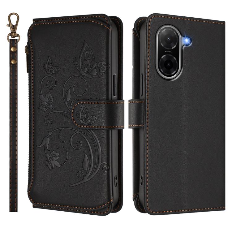 Funda de cuero con cremallera para Redmi A5 4G (173,3 mm), diseño de mariposas y flores (negro)
