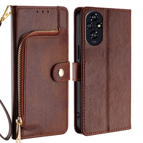 Funda de Cuero con Cremallera para Teléfono Honor 200 5G (Marrón)