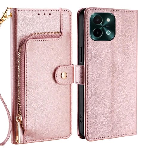 Funda de Cuero con Cremallera para Teléfono Vivo Y28 4G (Oro Rosa)