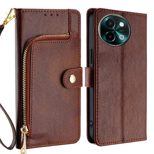 Funda de Cuero con Cremallera para Teléfono Vivo Y38 5G/T3X Global (Marrón)