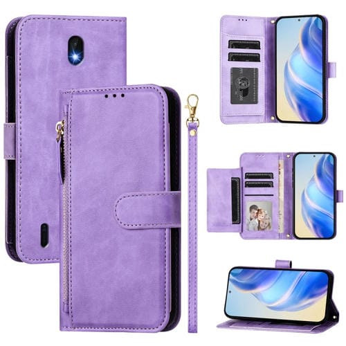 Funda de Cuero con Cremallera y Ranuras para Tarjetas para Nokia C01 Plus C1 2.ª Edición (Morado)
