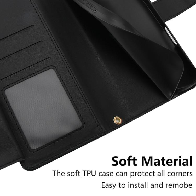 Funda de cuero con cremallera y siete ranuras para tarjetas para iPhone 17 Pro con cordón (negro)